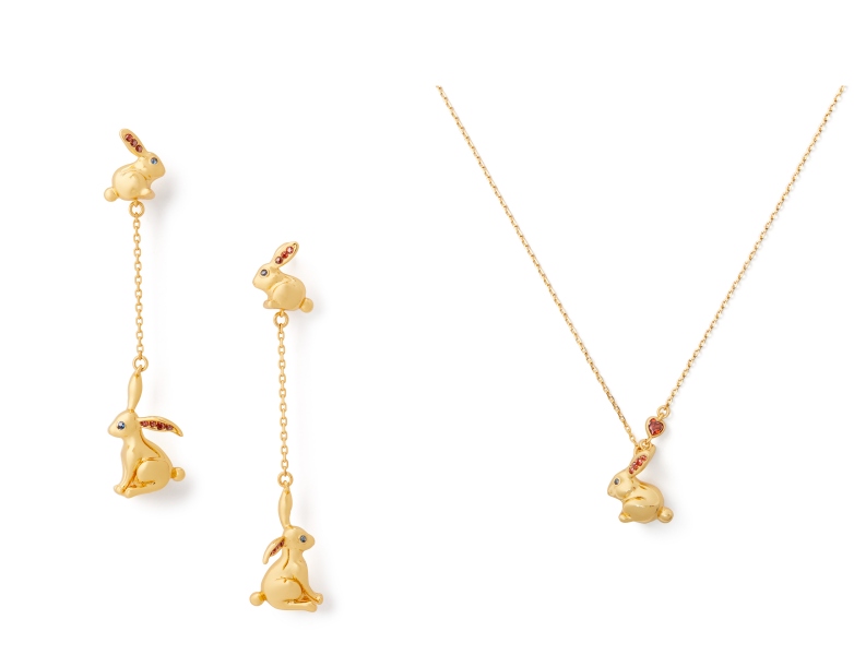 另外,还有两组以兔年为灵感的珠宝别出心裁的将兔子造型装点柔美新意。