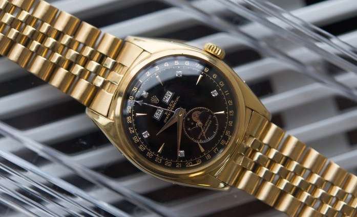 五十年代的 36mm Rolex Ref. 6062 本身已经是 Rolex 极罕见的款式,而这枚更是罕有之中的罕有,她是昔日越南末代皇帝 Bao Dai 的珍藏,在世上现存的三枚黑面配钻石刻度的 Rolex Ref. 6062 之中,只有这枚用钻石标示双数的小时,不只熠熠生辉,也与黑色面盘形成强烈对比。此外,Rolex的皇冠标志亦因此要稍向下移,Rolex Oyster Perpetual 三字更在双窗之下,全世界亦只有一枚。有着相当惊人的传奇歷史背景加持再加上表款本身的特色,这也能完美的解释为何这款保大劳力士能成为打破劳力士歷年的拍卖价格。
