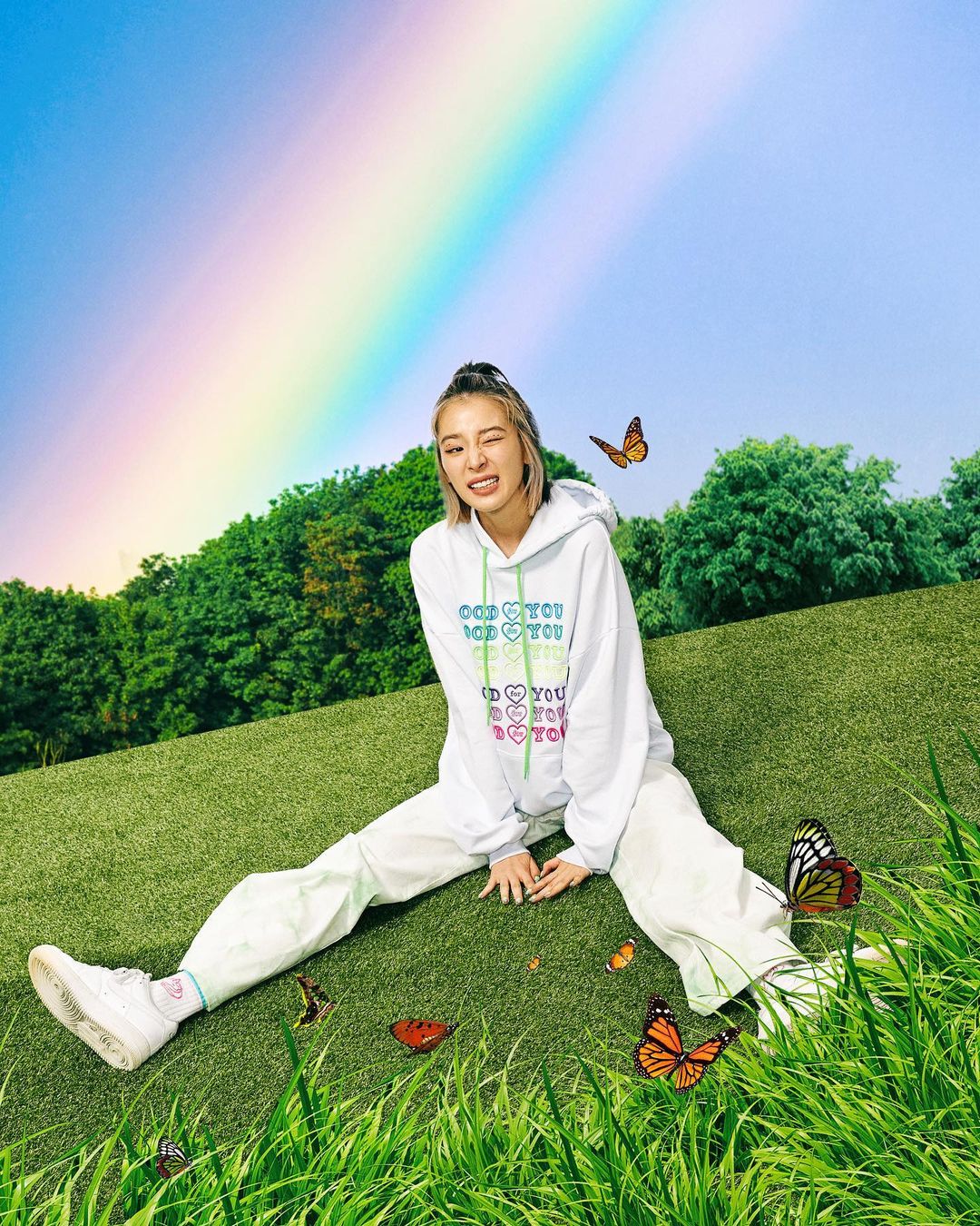 在社群媒体上的Irene形象非常百变,时而中性、时而优雅性感,但她的品牌形象似乎更为贴合她私下的穿着,俏皮、活泼,玩转了饱和的色彩。若熟悉Irene的粉丝,必定知道她是独角兽的头号粉丝,因此也将独角兽色系和元素加入到服饰设计中,充满玩味个性。