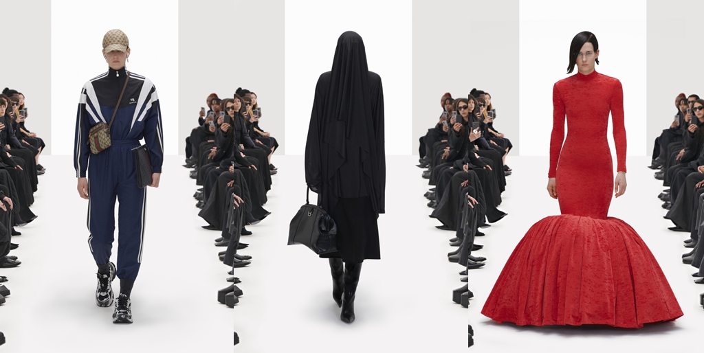今年4月,Gucci在100周年的大秀上惊喜与Balenciaga合作,推出一切跨界服饰,而在后者的2022春季系列大秀上,又再次回馈于Gucci!