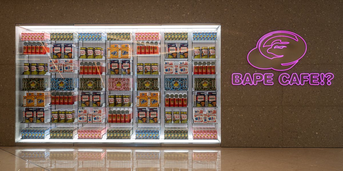 日本高街潮牌A Bathing APE(BAPE)终于在月前入驻马来西亚Suria KLCC。此外,让时尚人引颈期盼的BAPE Cafe也随之开幕。咖啡厅与品牌专卖店毗邻,其设计延续了品牌热衷的未来主义贯穿,设计前卫又带有童趣感,其墙面设计就是效仿超级市场的景象,各类印有Baby Milo肖像的零食都被当成了摆设,无论前、后、左、右都是打卡热点。