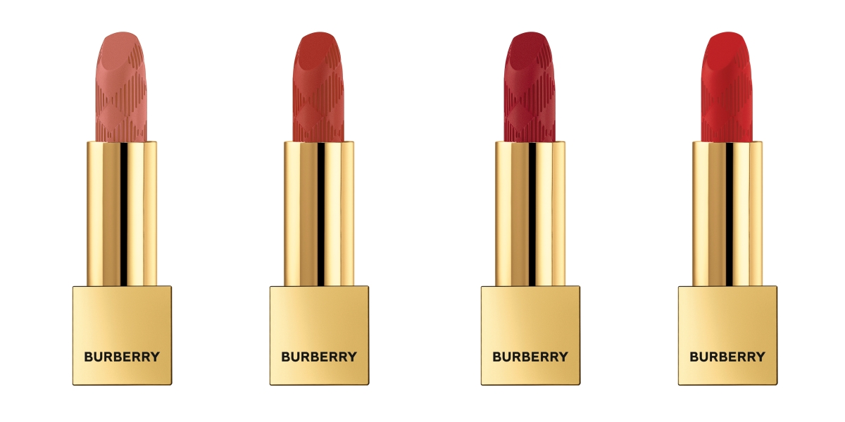 在Burberry Kisses Matte Lip Colour哑光唇膏系列20款色调中,每一款全新的唇膏姐印有金色管镌刻上品牌标志性的格纹,四款为主打色调,象征隽永不朽的美学,更重要的是,这四款中与品牌经典息息相关。