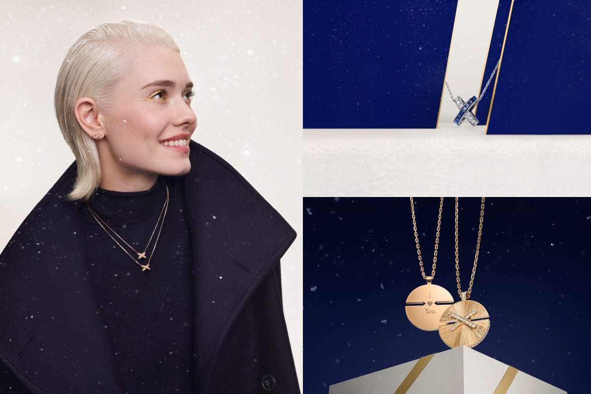 Jeux de Liens 吊坠以叠戴方式演绎层次感,节日版本更添华丽:亮面黄金、白金镶蓝宝石与钻石、或黄金镶钻款,皆散发闪耀的节庆光芒。