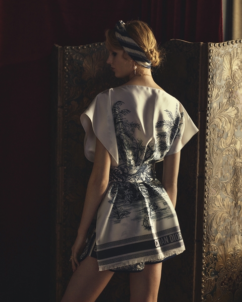 除了睡衣及长袍外,亦加入了针织服、连身长裙、连身衣、家居斗篷、连帽外套及泳衣,还可以衬上印有Toile de Jouy印花的大热Dior Book Tote手袋,打造最优雅讲究的家居服衣橱,而且塑造出一种生活态度,除了在家里穿着,服饰漂亮得绝对可以是外出时的优闲服。