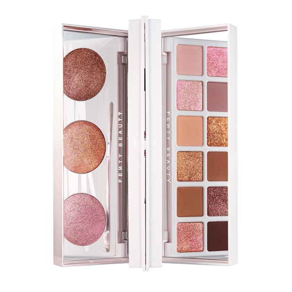 BOMB POSSEMEGA MIX & MATCH 眼影拼色盘这次推出限量版超大尺寸,包含12种重新构想的裸色系,而配色灵感来自Fenty Beauty 标志性的 Gloss Bomb 色调 Fenty Glow(玫瑰裸色)、Fu$$y(粉红色)和Hot Chocolit(浓棕色)。这款眼影拼色盘能让你玩转各种妆容,采用哑光、微光和金属饰面,具有丰富、光滑和可混合的色彩,同时拥有长效配方,不容易脱妆。