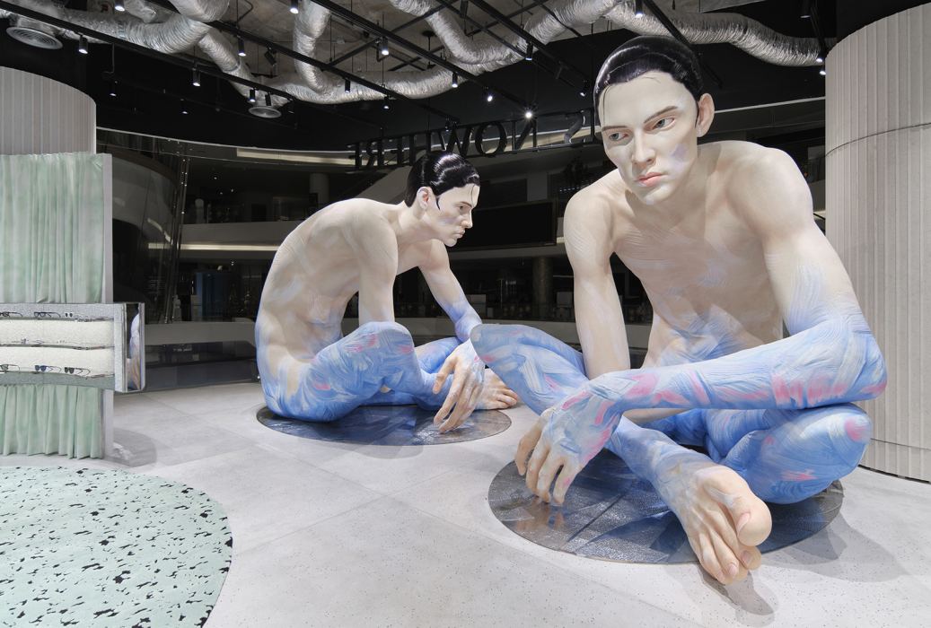 这次开幕的 HAUS NOWHERE 是曼谷首间双层店面,空间设计完全打破了你对「零售店」的想象。一进门就会被那两个巨大的超现实人像装置给震慑住,他们带着神秘又前卫的神情,配合各种反重力的建筑设计,随手一拍都是时尚大片。