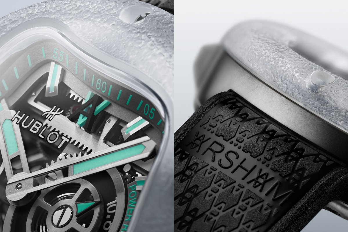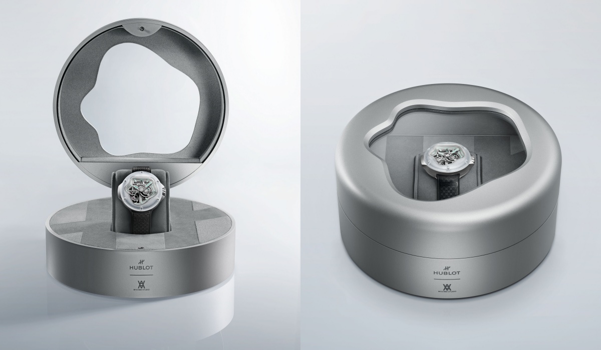 “此次与Hublot 合作打造的腕表通过一款灵感源自水滴的完美几何形态的表壳,探索时间的流转不息,并搭载精密的Hublot Meca-10 机芯。腕表的透明结构设计诠释着水的清澈与动感,仿佛时间凝驻于精密机械之中,在确保精准性的同时,始终流动不息。” — Daniel Arsham
