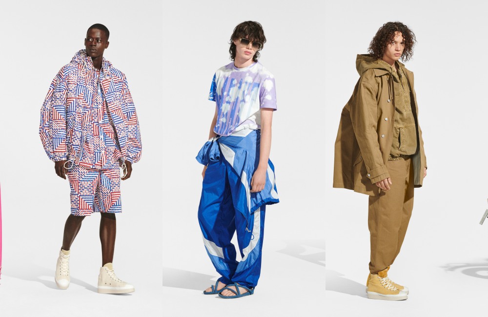 牛仔面料进行水洗或换上淡紫色,让人想起90年代风格和当时的流行音乐。扎染、条纹和图案的层次感必不可少,让你穿出 Grunge 造型。Y编特别喜欢这季的宽松剪裁运动套装和工装套装,图案T-shirt、空气感外套、慵懒毛衣和丹宁渔夫帽也是值得入手的单品。