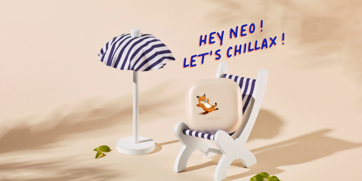 这款限量联名NEO气垫粉的主题为「Hey NEO! Let’s CHILLAX!」,其中「CHILLAX」是「CHILL + RELAX」(冷静+放松)的结合词,就像奶油系的外壳上躺着翘着双脚的慵懒小狐狸,不只CHILL又很RELAX,化妆没压力。你或许对Maison Kitsuné这个品牌有点陌生,但你一定见过他们的小狐狸!