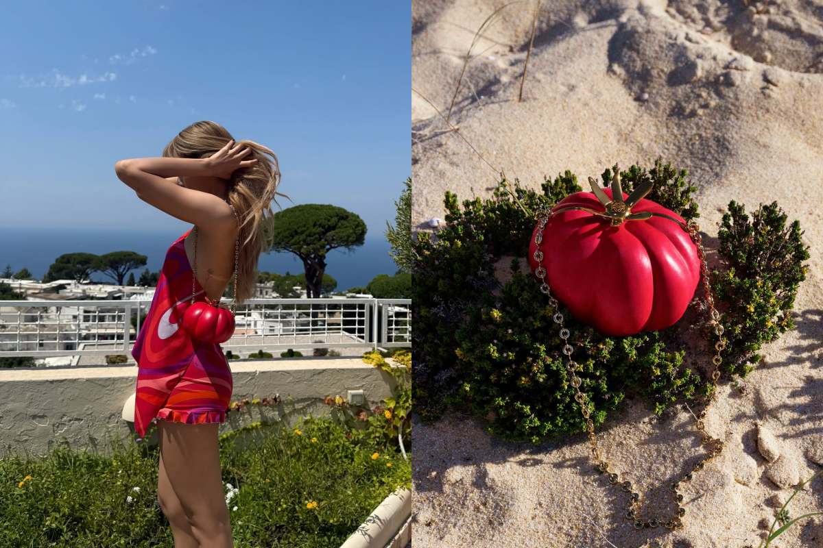 当 Lisa 想让造型多一点幽默感时,LOEWE 的 Tomato Clutch 就成了点睛之笔。立体番茄造型自带玩味属性,即使搭配极简的上衣或休闲裤装,也能瞬间拉高整体的时尚完成度。她在度假时搭配同色系的 Pucci短裤和露背上衣,好有活力!