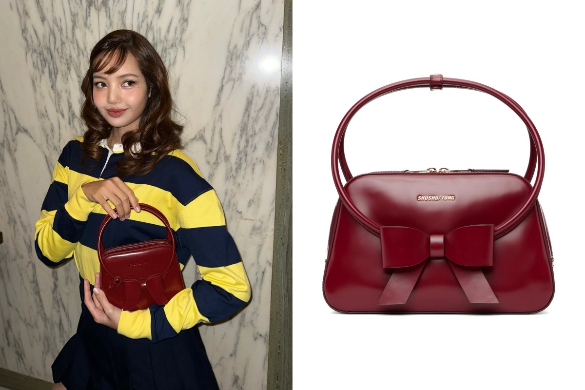 当 Lisa 展现少女感一面时,SHUSHU/TONG 的 Severine Mini Bag 成为她的理想选择。带有复古与学院气息的设计,让短裙造型看起来更轻盈,也更有层次。这种介于甜美与boyish之间的风格转换,正是她私服最迷人的地方。