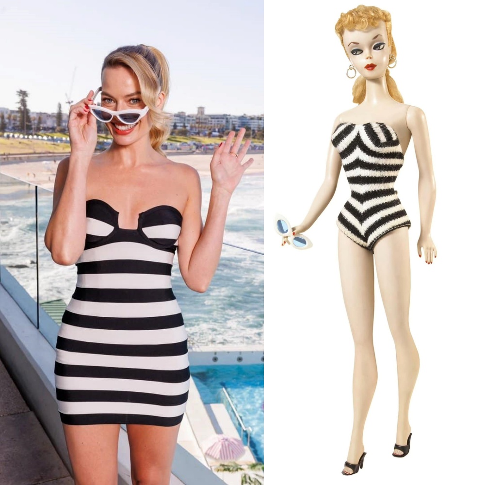 Margot Robbie 在悉尼的《Barbie》宣传行程穿上由 Herve Leger 特别订制的黑白条纹小洋装亮相,墨镜和发型也很到位有没有~这身洋装是致敬1959年推出的第一个泳装芭比娃娃,太太太用心了~