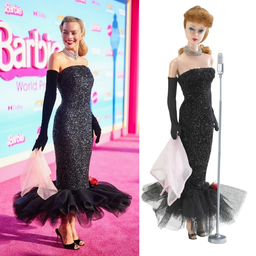 《Barbie》电影前天 (7月9号) 在洛杉矶首映,饰演芭比的 Margot Robbie 穿了由 Schiaparelli 特别订制的礼服,致敬1961年的「Solo in the Spotlight」芭比娃娃,优雅精致不说,连手上的手帕都神还原,太美!
