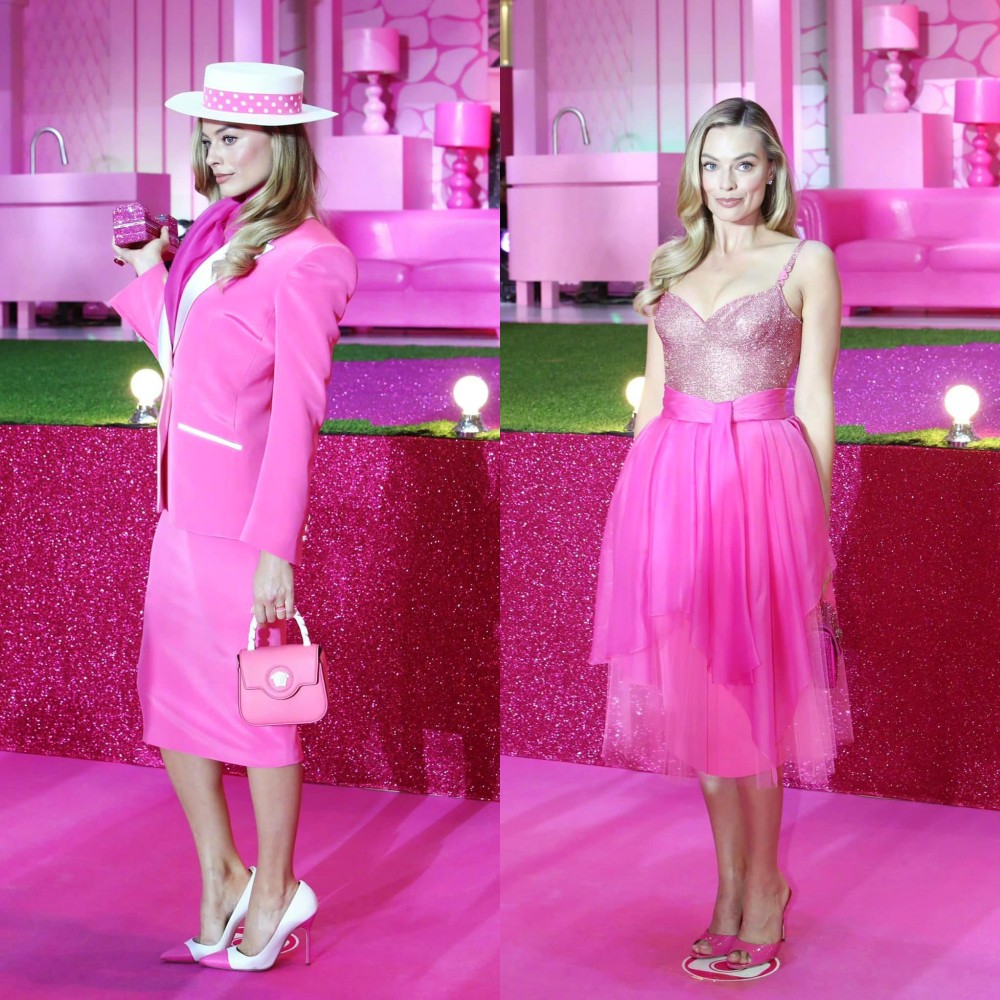 到韩国宣传《Barbie》电影时,她穿了由 Versace 订制服亮相,而且有换装!因为要呼应1985年这组名为Day to Night 的芭比娃娃。麻烦再次给造型师掌声~