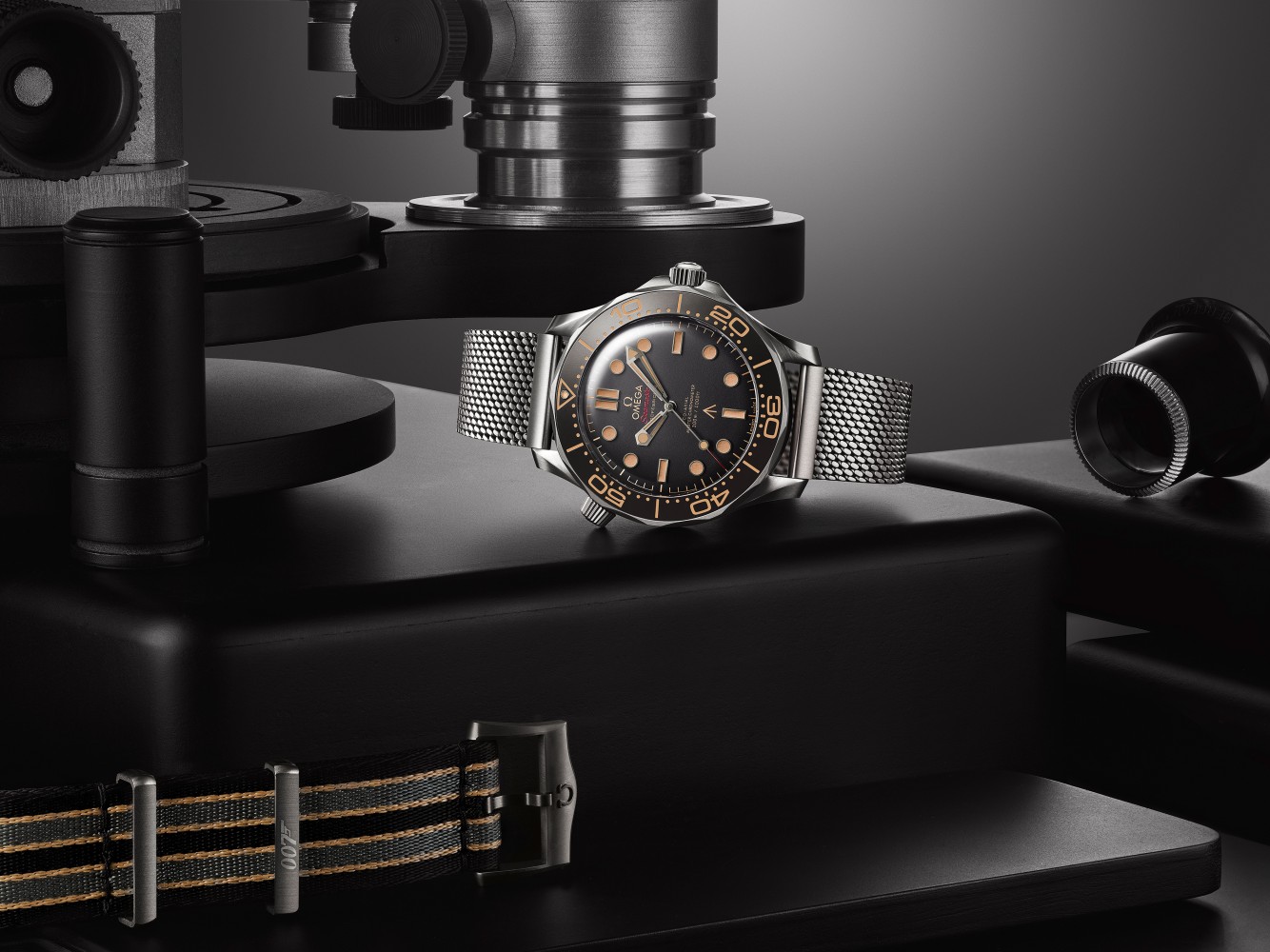 而在最新的《007生死交战》(No Time To Die)当中,Daniel Craig佩戴的是Omega海马潜水300公尺腕表(Omega Seamaster Diver 300M),有别于此前采用现有型号,这次Daniel Craig和剧组也参与设计过程,好让腕表更能符合剧情和角色设定。这款腕表采纳丹尼尔的建议,加入不少复古元素和色调。表盘和表圈均采用棕色铝合金打造,呈现类似“热带”表盘(指表盘经年日晒而变色)的韵味。指针、时标和刻度上的夜光涂料经过仿旧处理,即使在黑暗中也有时光淬炼之感。