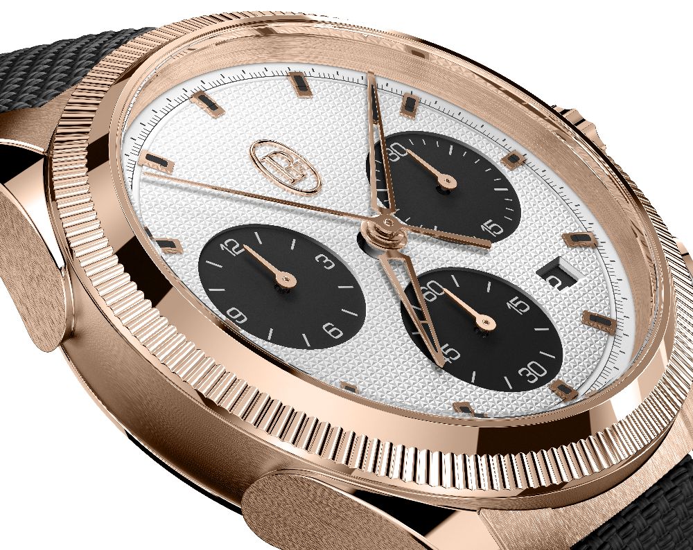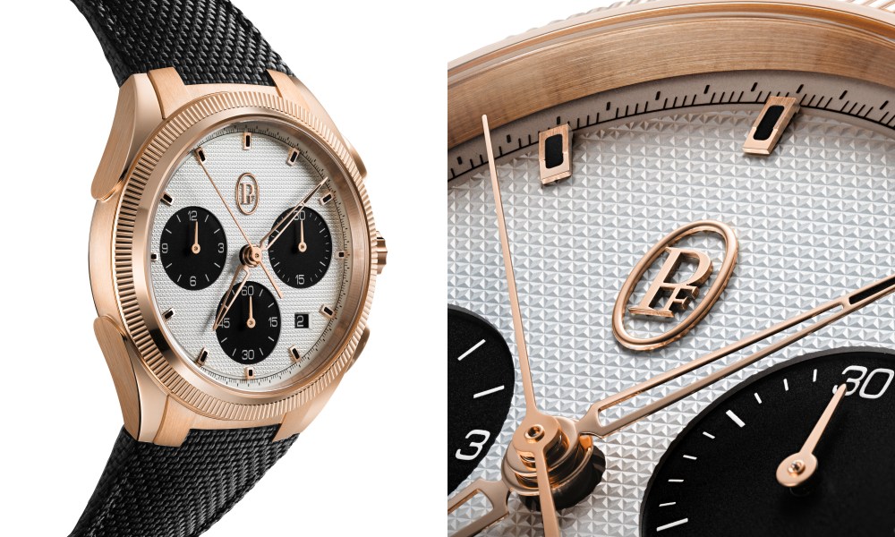 饰有160个凹槽的滚花表圈(而通常情况下,Tonda PF 系列腕表的滚花表圈包含225个凹槽)呈现出更具动感型格的光影效果。其配备“三角饰钉”玑镂饰纹表盘,以古老手工装饰工艺雕琢的立体图案呈现出愈加唯美的光影效果。时标覆有黑色Superluminova夜光涂层。表盘的简洁设计和简约风格带来了无与伦比的读时体验:由于采用了“熊猫盘”设计,即浅色表盘搭配黑色小表盘,腕表可以确保清晰便捷的读时体验。Cordura®面料的手工缝制橡胶表带与表壳流畅相接,浑然一体。两款腕表都具有100米的防水性能。