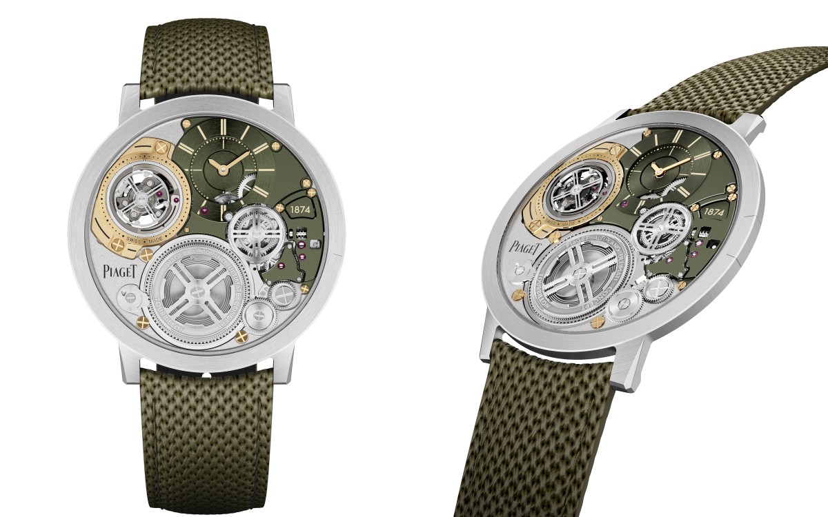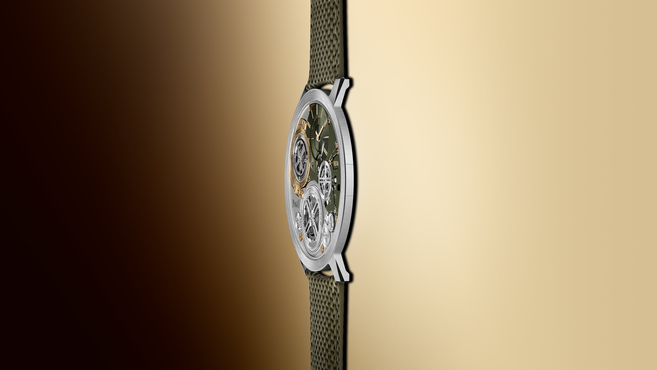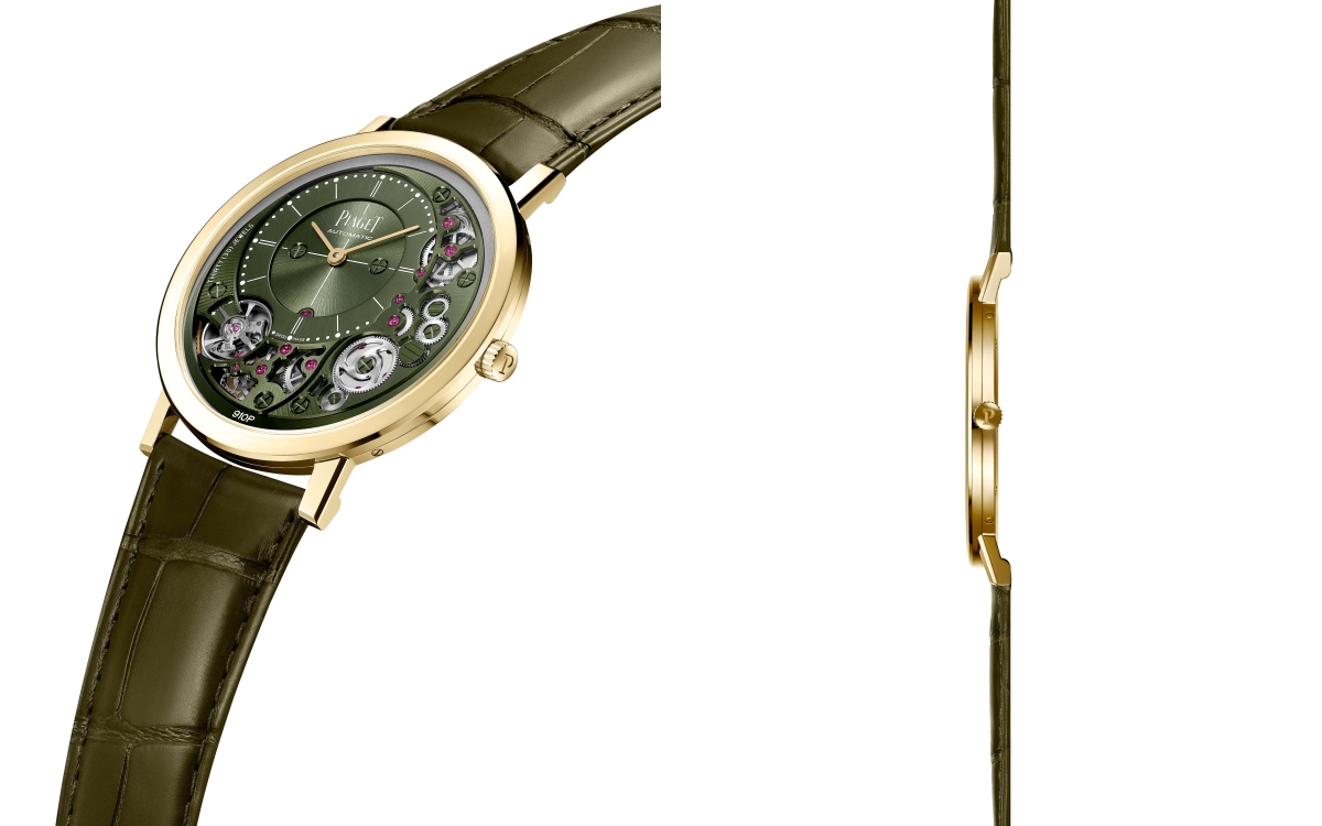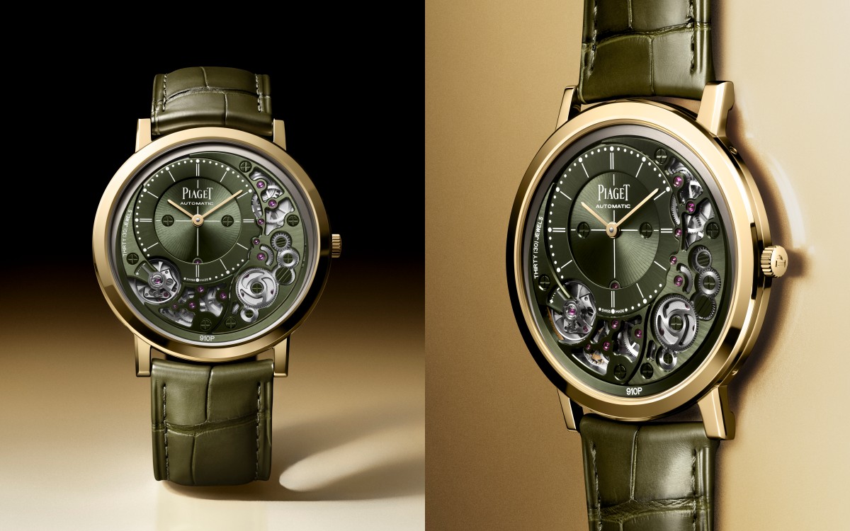 PIAGET 以前卫设计语言和极致制表工艺,推出两款全新 Altiplano 系列腕表。卡其绿与金色的对比配色,赋予腕表鲜明的现代美学格调;超薄结构与珠宝细节的交织,则展现品牌“永远超越期待”的创作哲学。
