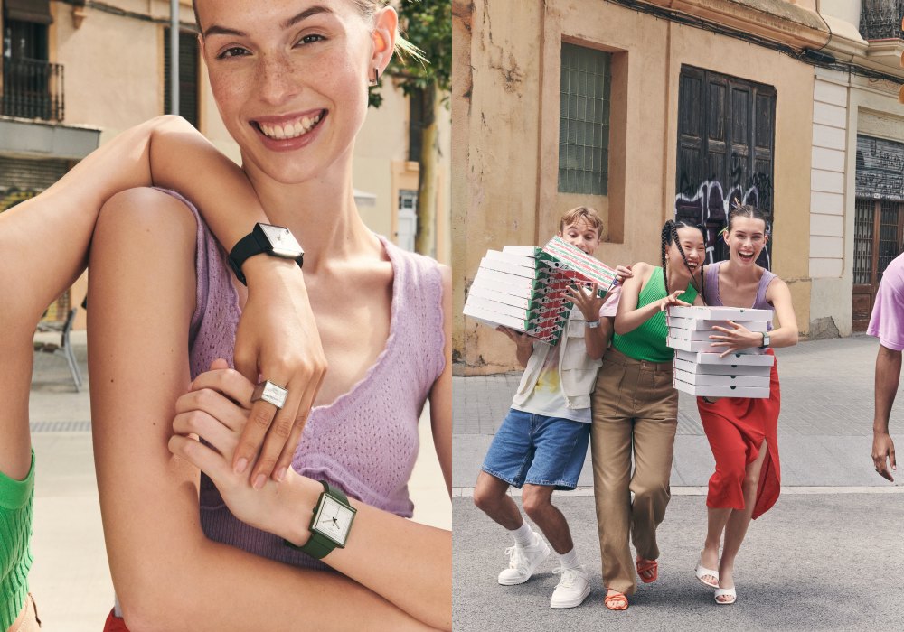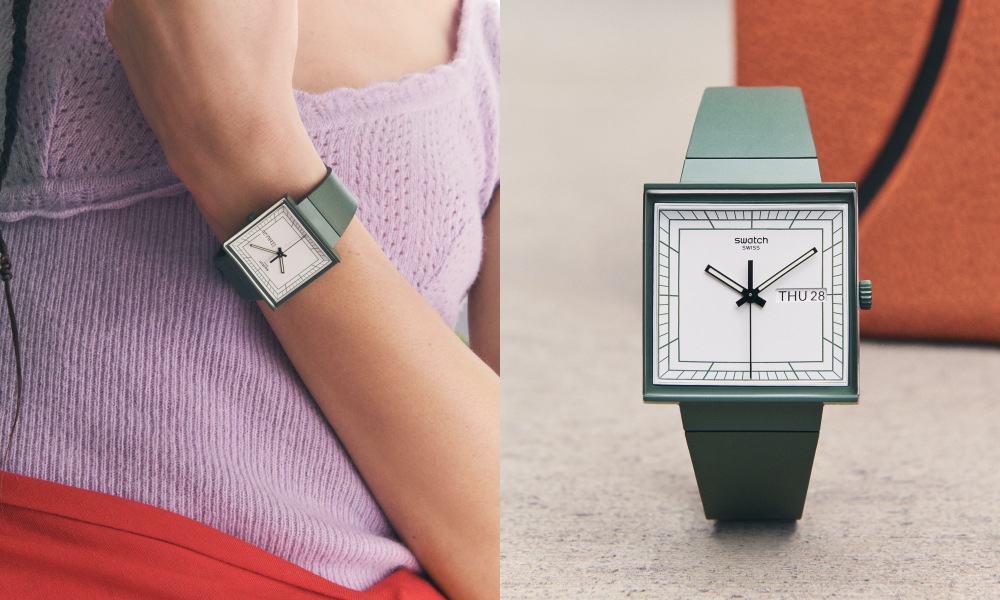 四款不同风格的腕表,均选用坚固的方形边缘和 33 mm x 33 mm 表壳,独特的外观让其在一众 Swatch 腕表中脱颖而出。简洁的表盘、表壳以及柔和的哑光灰色、绿色、米色和黑色色调,是从 Swatch 早年设计中汲取的灵感,反映出四十年前的设计美学,经典又时尚;而BIOCERAMIC 创新性植物陶瓷表壳、表冠和表扣则深度诠释了 Swatch的 创新精神。