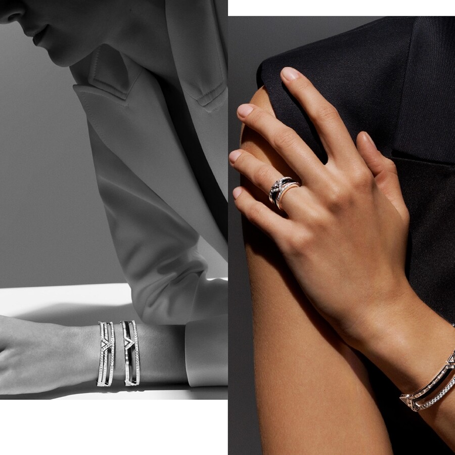 正如其名"PURE V"系列,整体设计以”V“作为主轴,同时仅采用了白金、钻石和玛瑙三种元素打造8款珠宝配饰,带有少许2014年的Acte V高级珠宝系列的气息。
