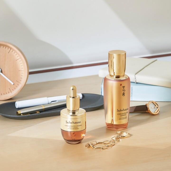 SULWHASOO人参精华系列采用亚洲智慧与前沿科技,超过50年专研传奇赋活精萃Ginsenomics,通过活能渗透技术,由表及里焕活肌肤内生力;微观深入,层层紧塑,8周实现提、拉、紧3重功效。Ginsenomics将蕴含人参传奇修护力量注入产品,甄选30种人参皂苷,通过生物转化科技,精纯凝炼6000倍高浓度活效精萃,通过活能渗透技术,由表及里焕活肌肤内生力。
