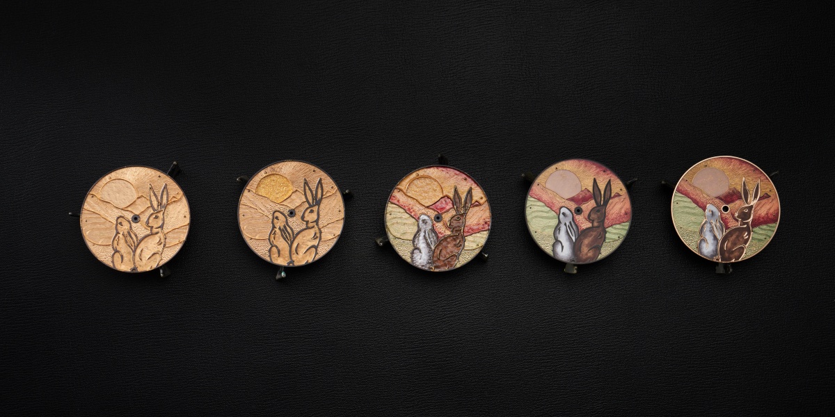 全新鎏金系列灵兔生肖腕表Classico Rabbit 限量发布88枚,一双灵兔共望旭日东升、普照山河的焕新之景,蕴含着对于农历新年的美好愿景。腕表巧妙运用传承数个世纪的内填珐琅(champlevé)工艺,将艺术大师笔下的画面生动呈现于表盘之上。仔细欣赏表面:太阳内散落的温暖金色与外在散发的万丈光芒相互辉映,每座山脉都有不同的细致纹理,蜿蜒的绿色梯田也有着精美层次,而聪慧灵兔身上由内填珐琅工艺所渲染而成的特殊毛色,让整体图案看来栩栩如生,感觉表盘上的成双灵兔跃然欲出。